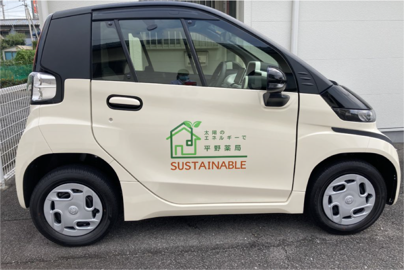 21年には「再エネ100宣言REAction」に加盟し、すべての薬局で使用する電気を100%再エネ由来の電力に切り替えました。その後、在宅医療に3台の電気自動車を導入し、充電時は薬局で太陽光発電した電気を使用しています。24年に設置したV2Hは、夜間電源や災害時の非常用電源として活躍中です。