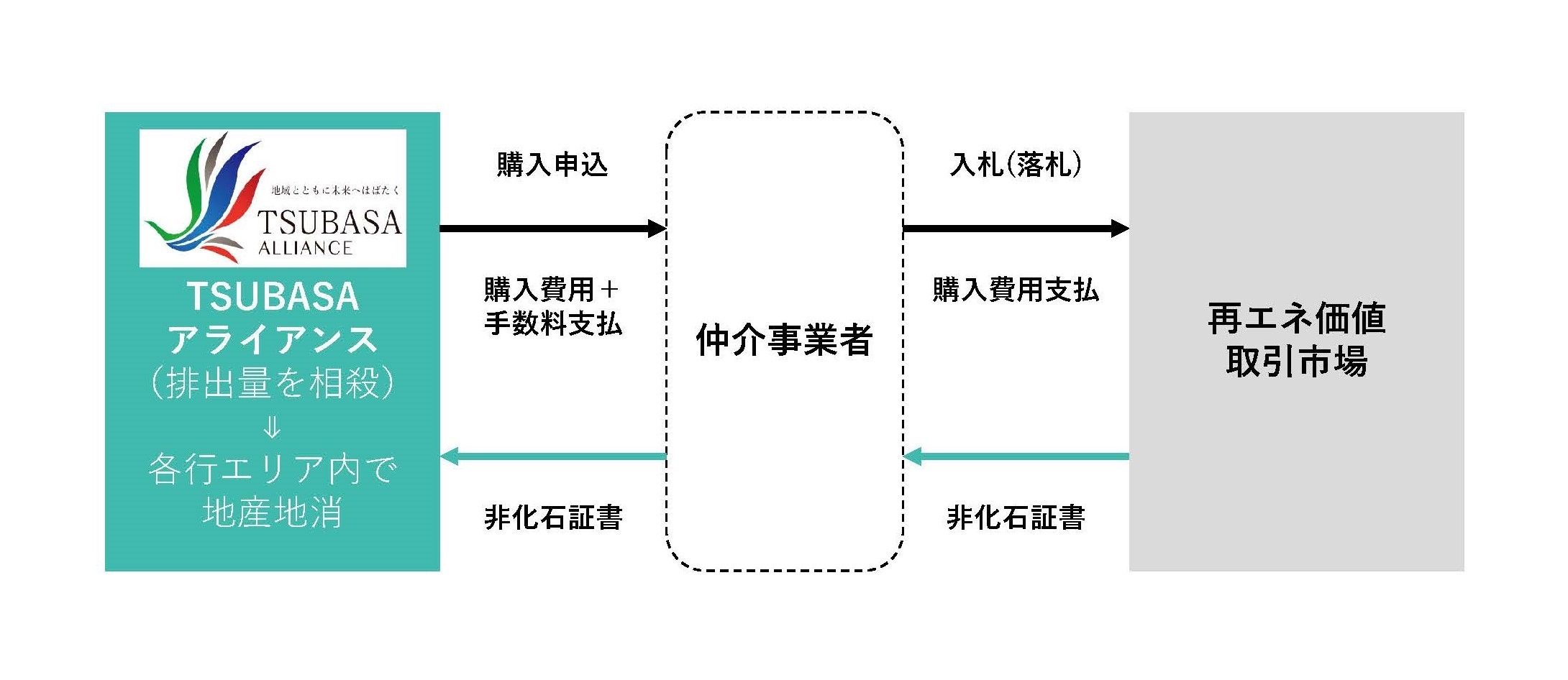カーボンニュートラル達成に向け、再エネ電気プランの利用や非化石証書の購入など、再エネ由来電力を活用しています。2025年3月には、当行含む10行が参加する地銀広域連携において、各行の営業エリアで創出された「環境価値」の地産地消や「FIT非化石証書」の購入(10行合計で500kwh分)を行いました。