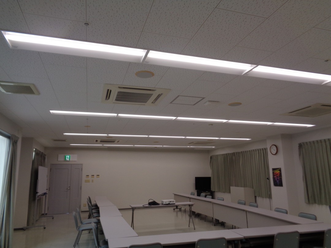 老人保健施設なんぐん館の既存の蛍光灯をLED照明器具に、全館取り換えを行うことで、電気の使用量を大きく減らすことができ、光熱費の削減につながるほか、CO2排出量の削減にも貢献しています。