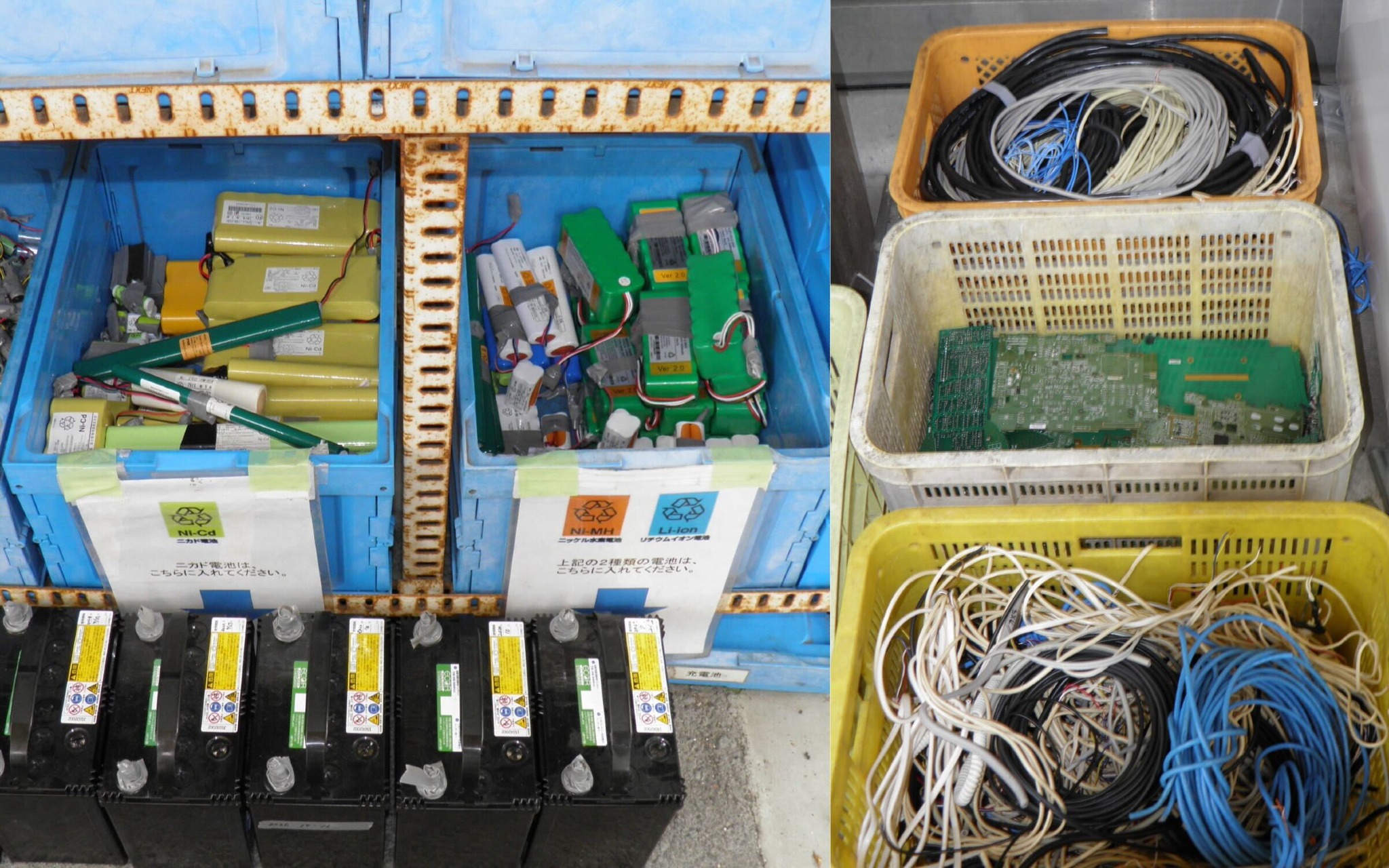 バッテリーは、充電及び電圧等のチェックした後、再利用し廃棄バッテリーの削減を図るとともに、他の電池等は産廃委託業者が、リサイクル及び廃棄が容易となるよう分別しています。