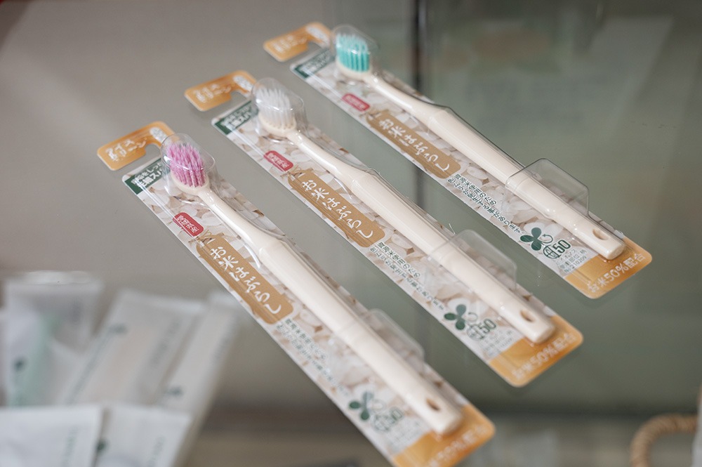 ホテルアメニティ向け高品質ハブラシの製造を手がける山陽刷子株式会社は、製品に愛媛県産のお米由来のバイオマス原料であるライスレジンを使用した『ライスレジンハブラシ』を市販向けに開発しています。